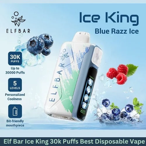 ترکیبی از طعم شیرین بلوبری با خنکی ملایم یخ، پاد 30000 پاف آیس کینگ طعم بلوبری تمشک آیس (Blue Razz Ice) با 50 میلی گرم نیکوتین (5 درصد)